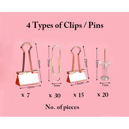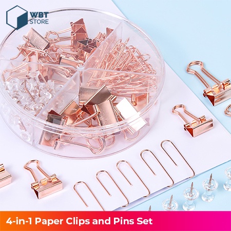 Elegant 4 in 1 Paper Clips and Pins Set (Binder Clip, Round Paper Clip, Push Pin)
