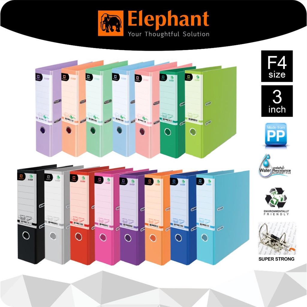 Elephant 2100F 3Inch F4 Color Lever Arch File Super Strong (1pc)