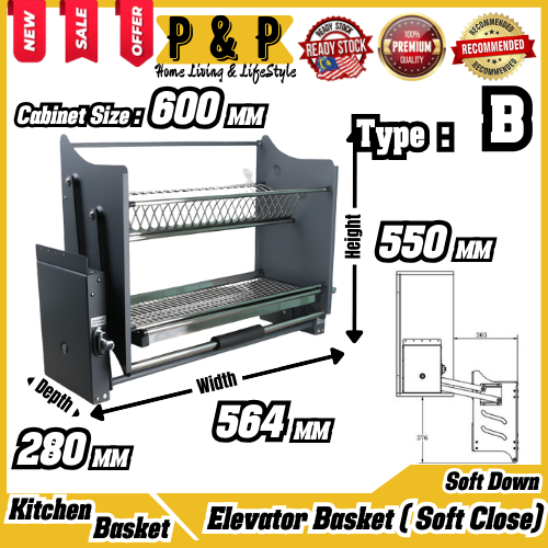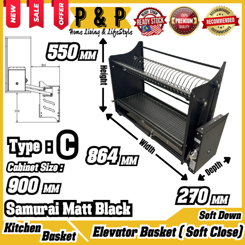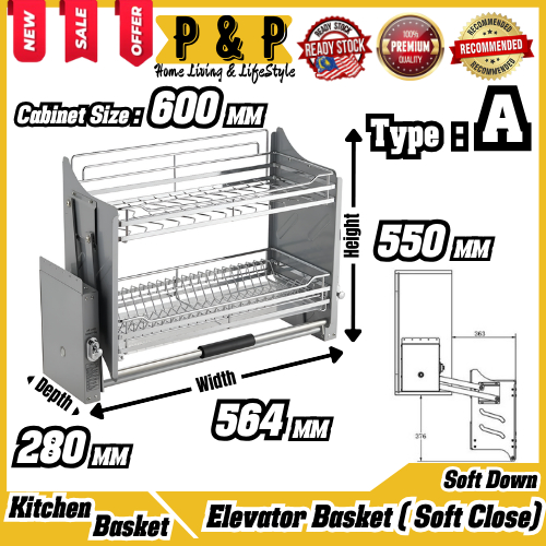 AXE™ Elevator Dish Rack Basket Stainless Steel SUS304 Basket With Soft Closing Kitchen Dapur Basket