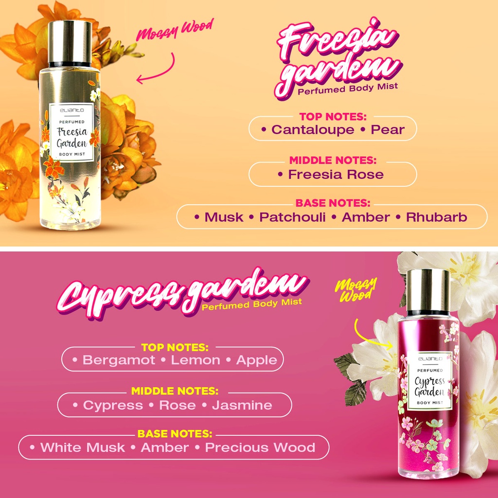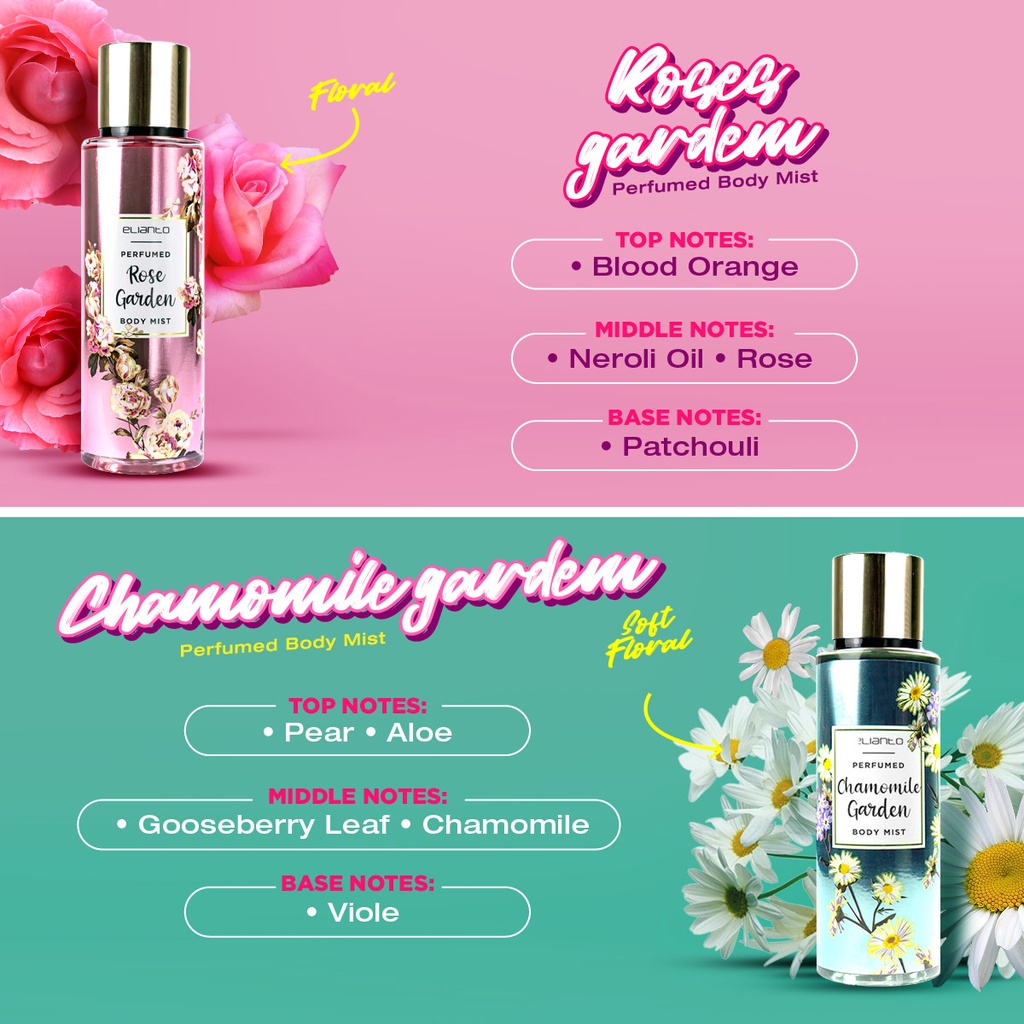 Elianto Perfumed Garden Body Mist Fragrance Perfume (250ML) Body Spray Fragrance Mist Pewangi Badan