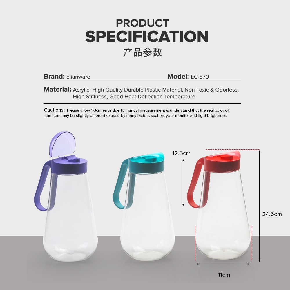Elianware 1.7Ltr Alcrylic Elegant Transparent Water Jug
