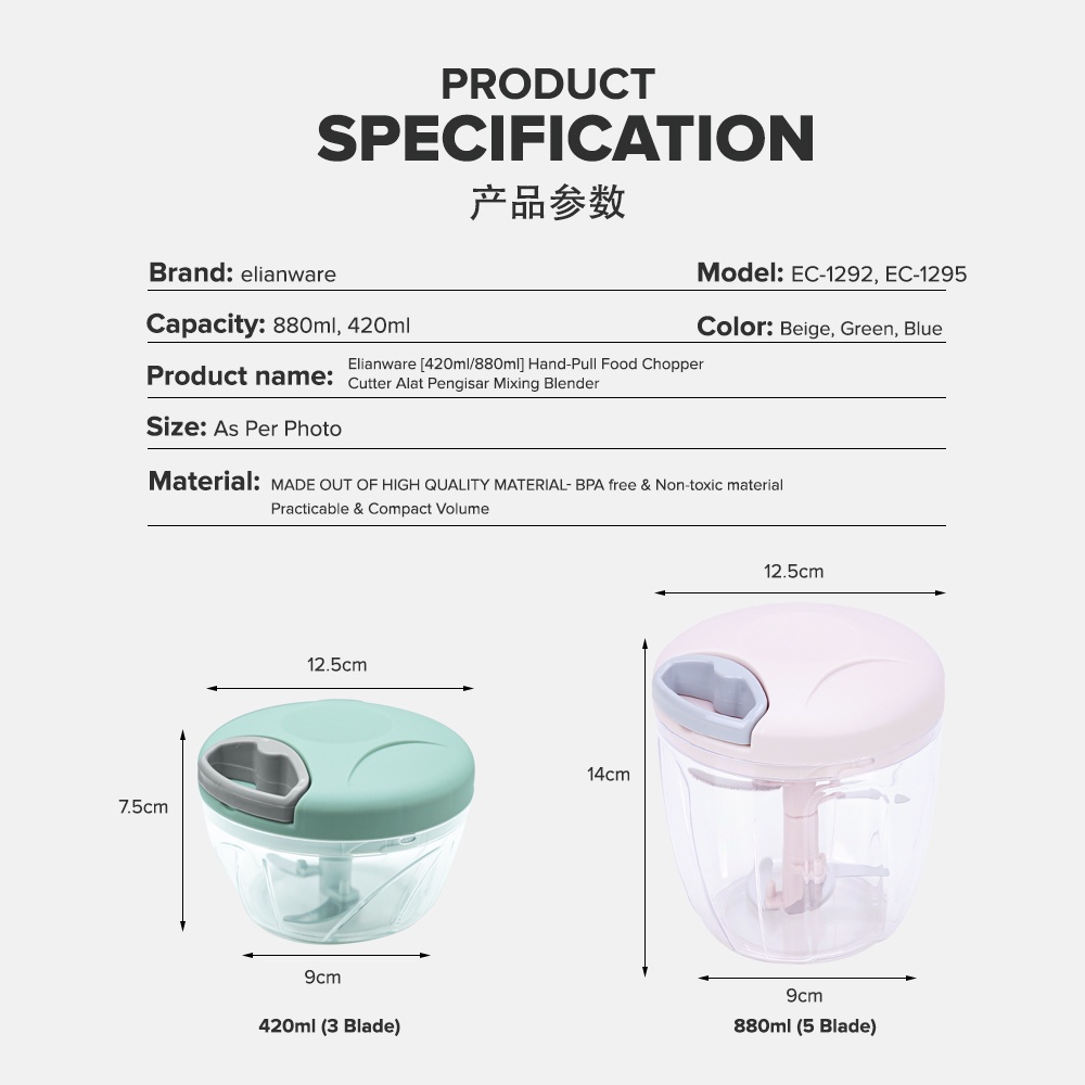 Elianware Hand-Pull Food Chopper (420ml/880ml)
