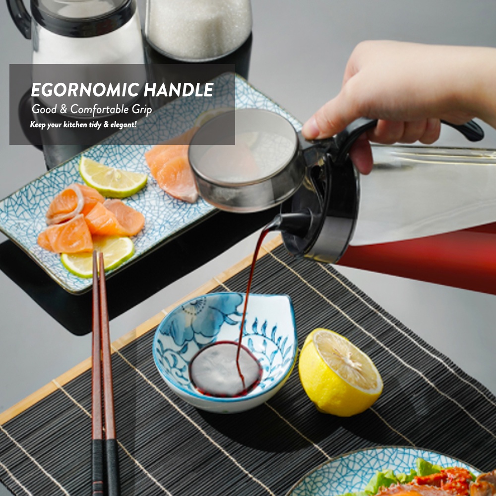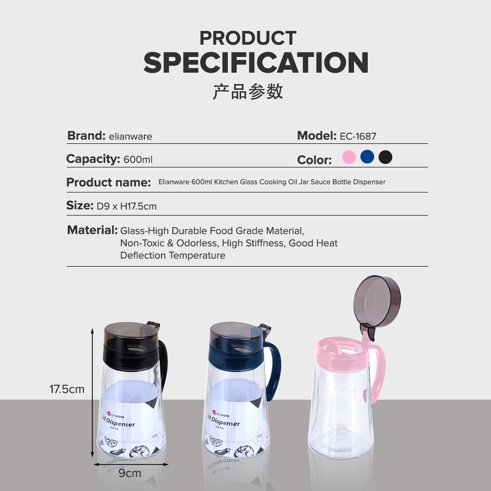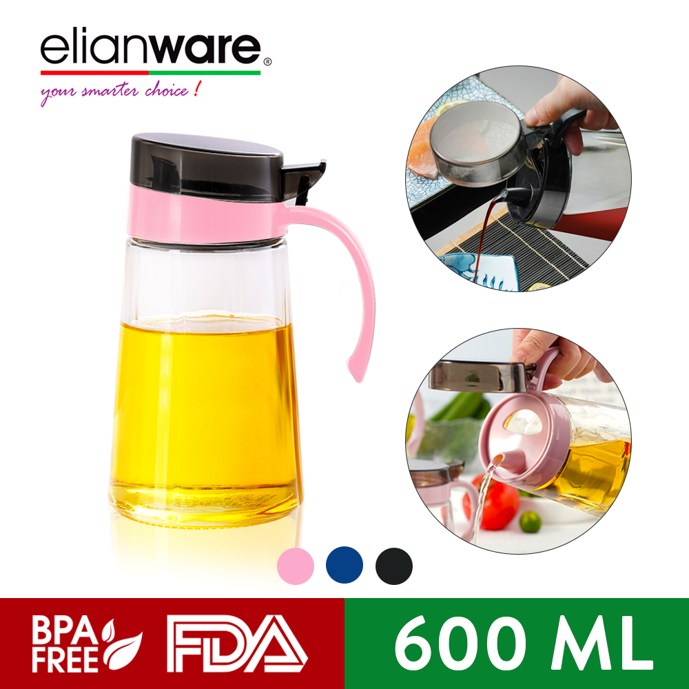 Elianware Kitchen Glass Cooking Oil Jar Sauce Bottle Dispenser (600ml)