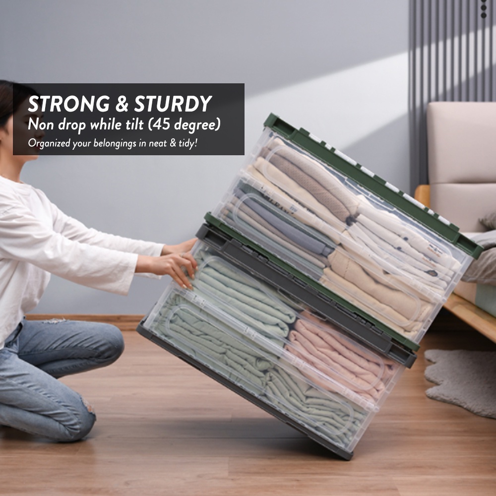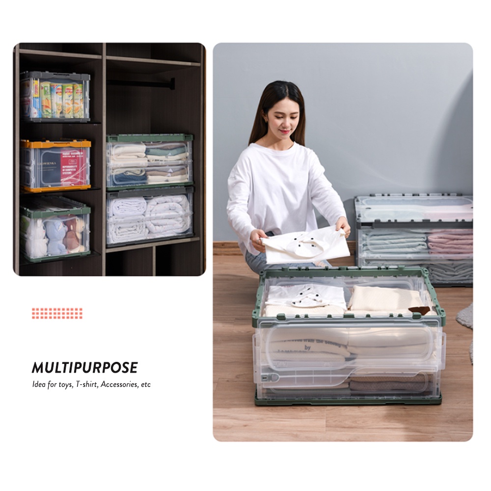 Elianware Foldable Storage Box Multipurpose Easy Lock Large Transparent Stackable Drawer Wardrobe Organizer