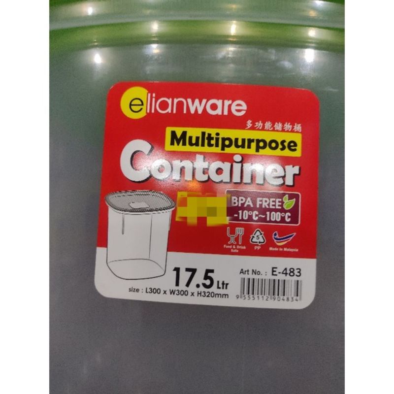 Elianware Multipurpose Container/Tong kerepek/Tong Keropok/Bekas air/Baldi/Bekas bertutup/Tong plastik/food Container