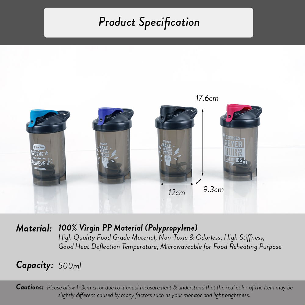 Elianware Protein Shaker Blender BPA Free Container with MIxing Ball (500ML)