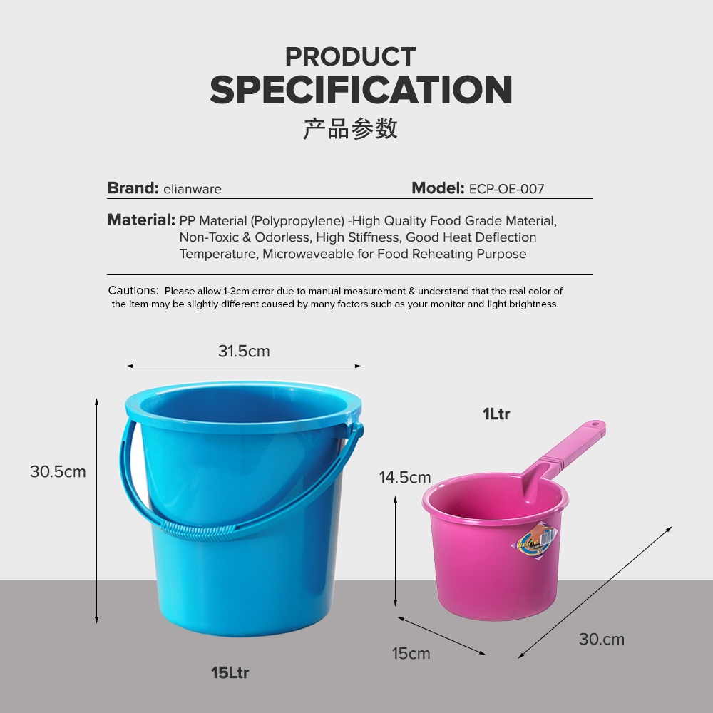 Elianware Tong Air Baldi & Water Gayung Bathroom Set