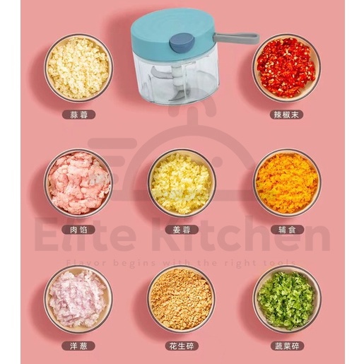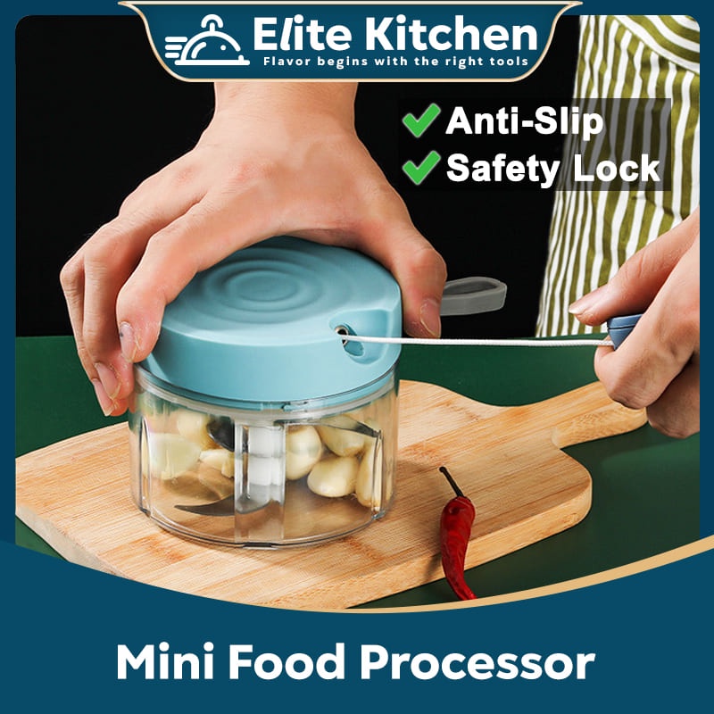 Elite Kitchen - Stainless Steel Blade Mini Food Processor Chopper Garlic Slicer Chopper Cutter Grinder Mixer Pencincang