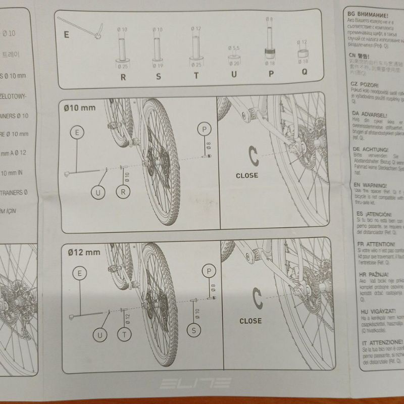 Elite Thru Axle adapter kit for 10mm and 12mm diameter through bolts