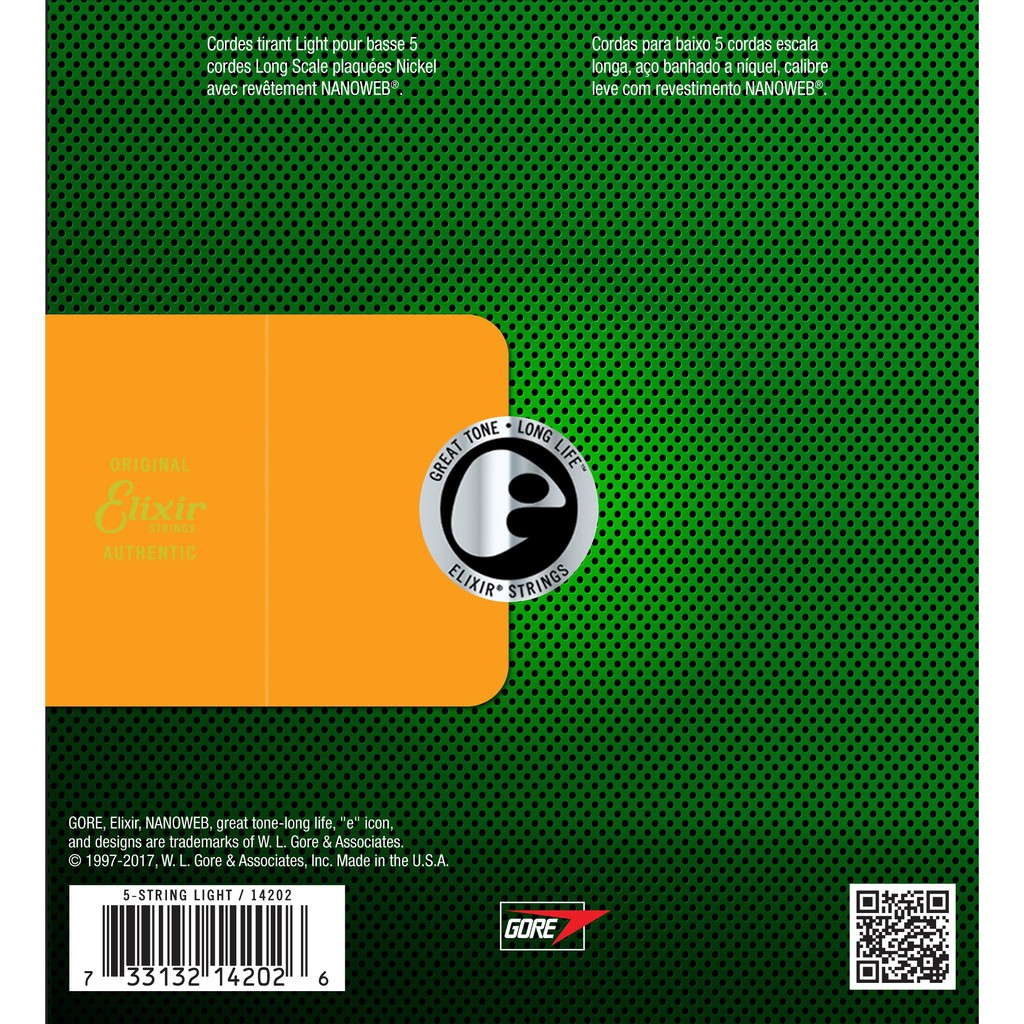 Elixir 14202 Nanoweb Light Long Scale 5-String Bass Strings 45-130