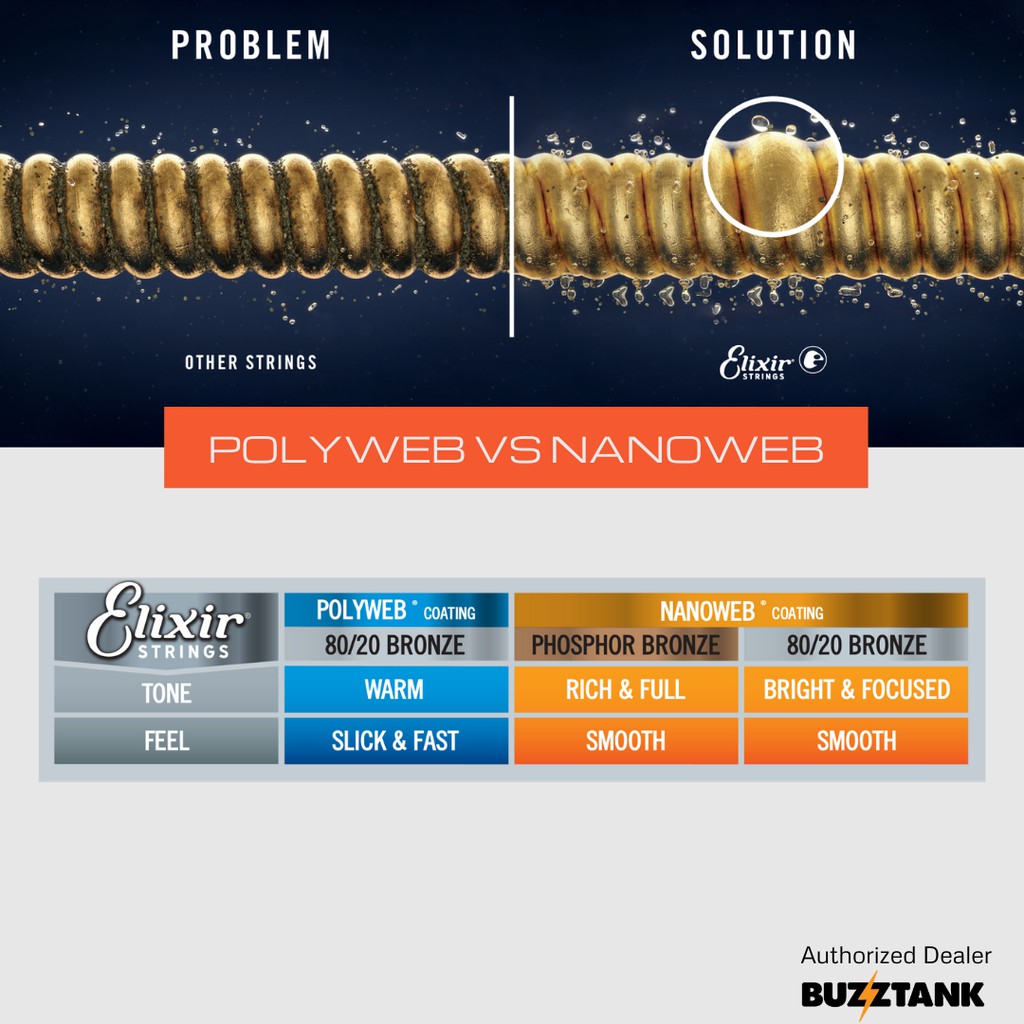 Elixir NANOWEB Acoustic Guitar Strings 80/20 Bronze