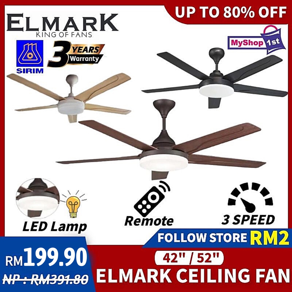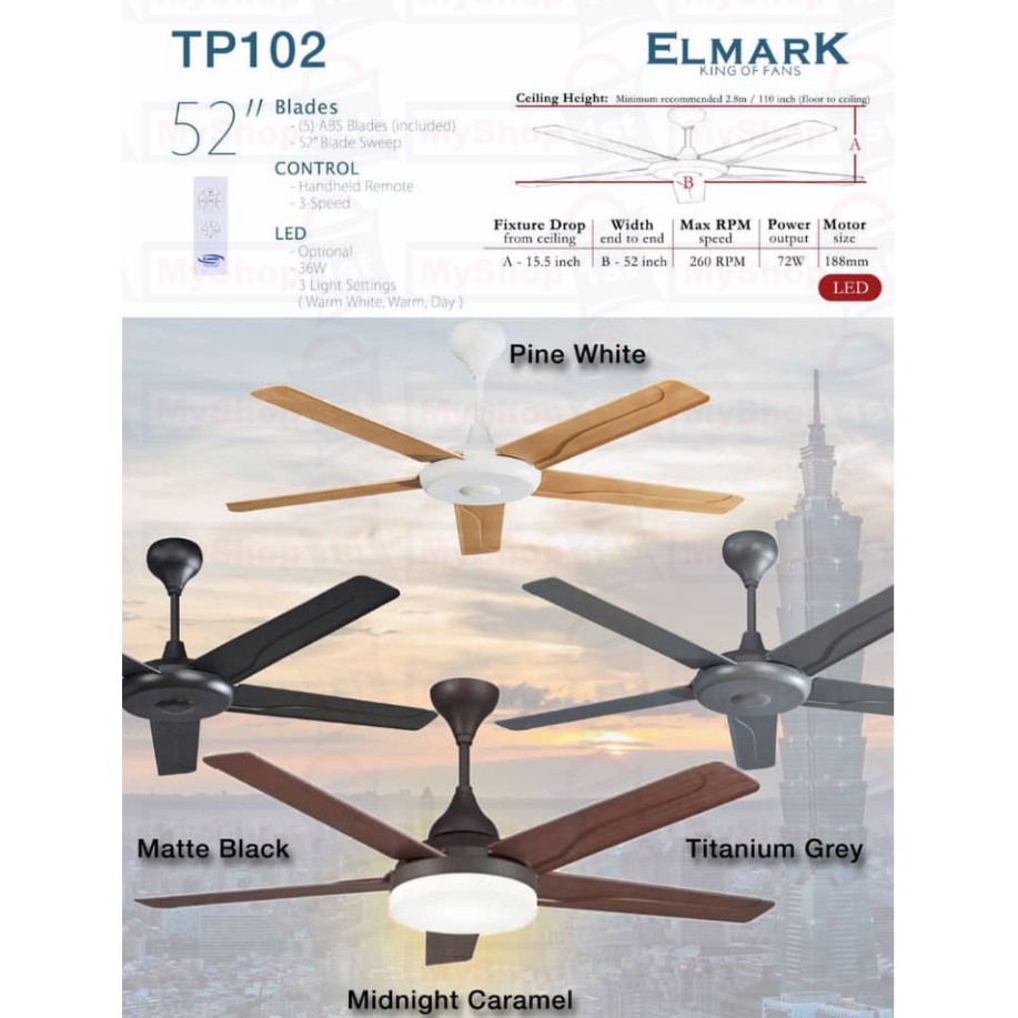 Elmark 52" Kipas Siling ABS Blade TP 102 LED Light with Ceiling Fan Ceiling Fan with Remote Control