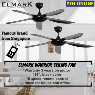 Elmark Warrior Ceiling Fan Remote 56" Black / Kipas Siling Hitam Remote 5 Blades 5 Speed Ceiling Fan