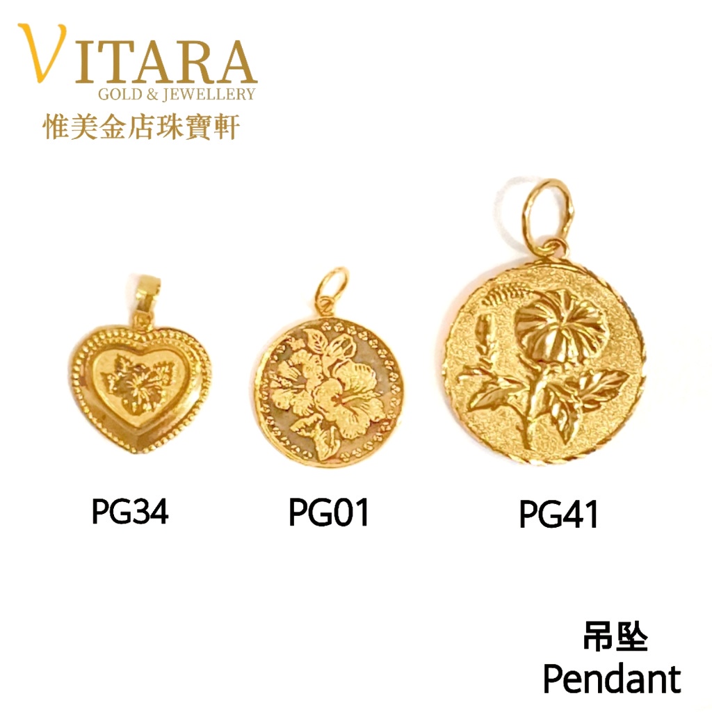 Emas 916 Bunga Raya Loket | Gold 916 Hibiscus Pendants PG01+