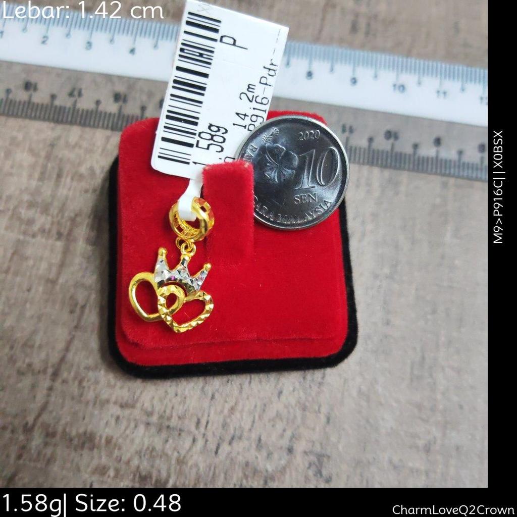 Murni Mewah Emas916, Loket Pdr Charm Crown Double Love 6863 1.4 cm Pd 0.48