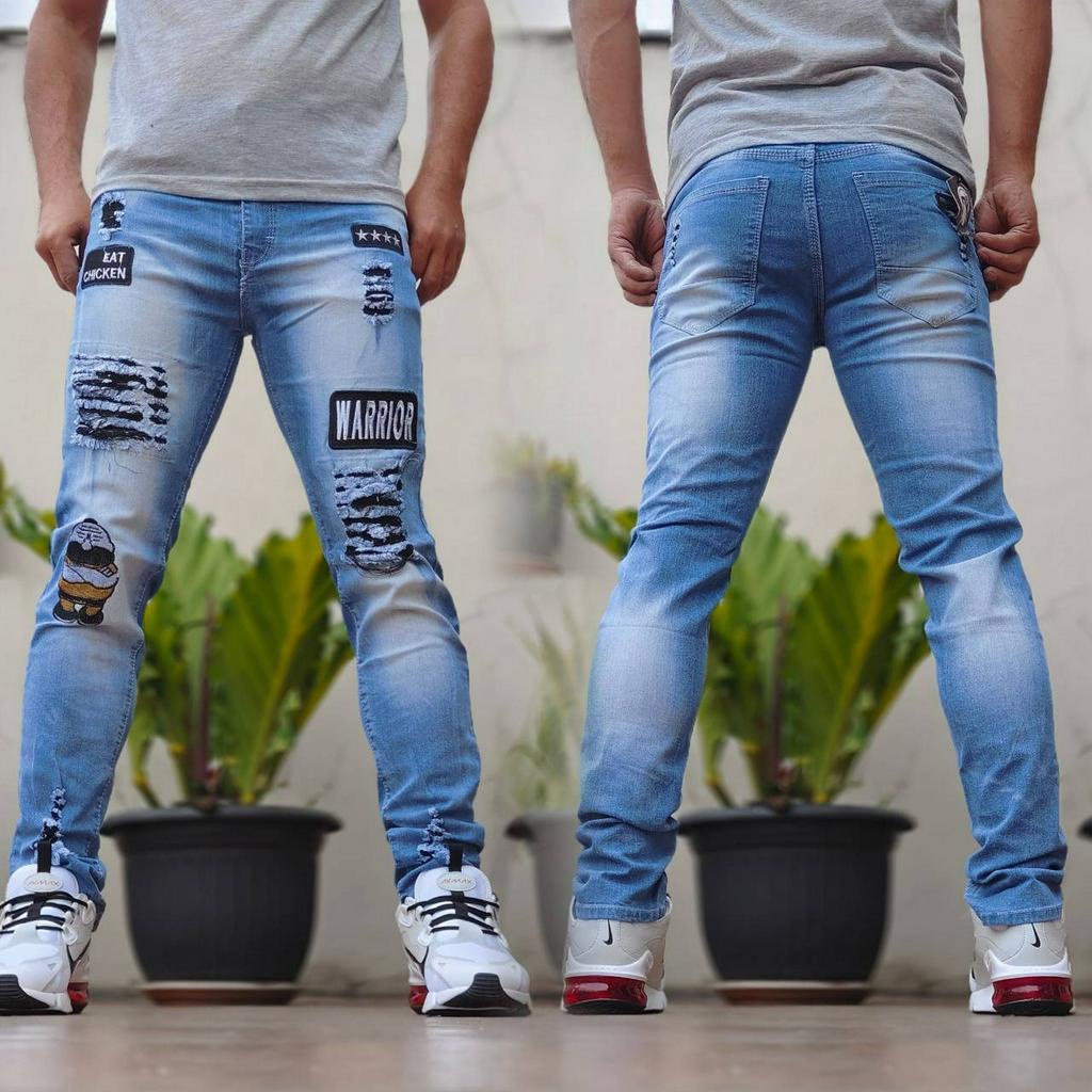 Emblem Ripped Jeans Men's Long Jeans Emblem Monk Ripped Jeans Men's Ripped Pants Non-See-through Men's Jeans Men's Slimfir Jeans Seluar Jeans Lelaki