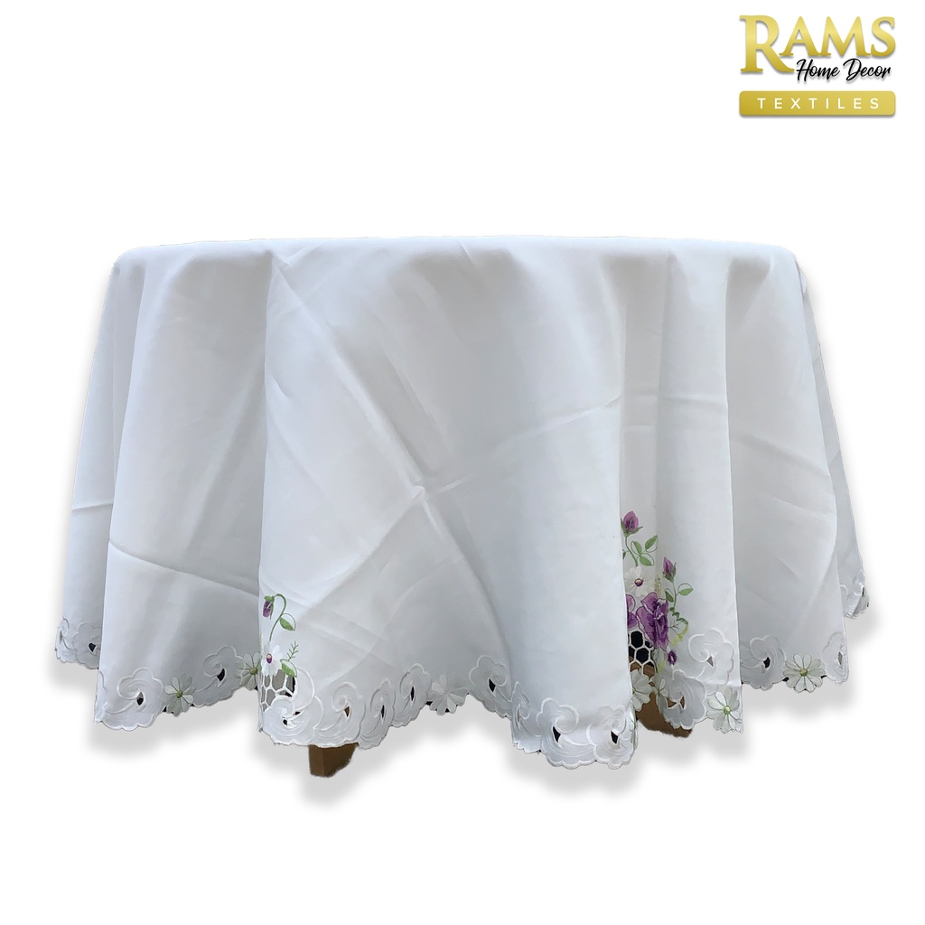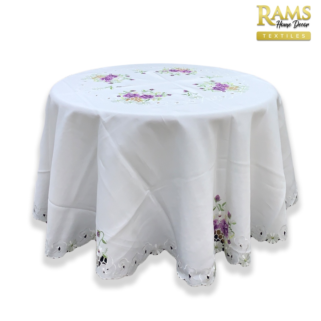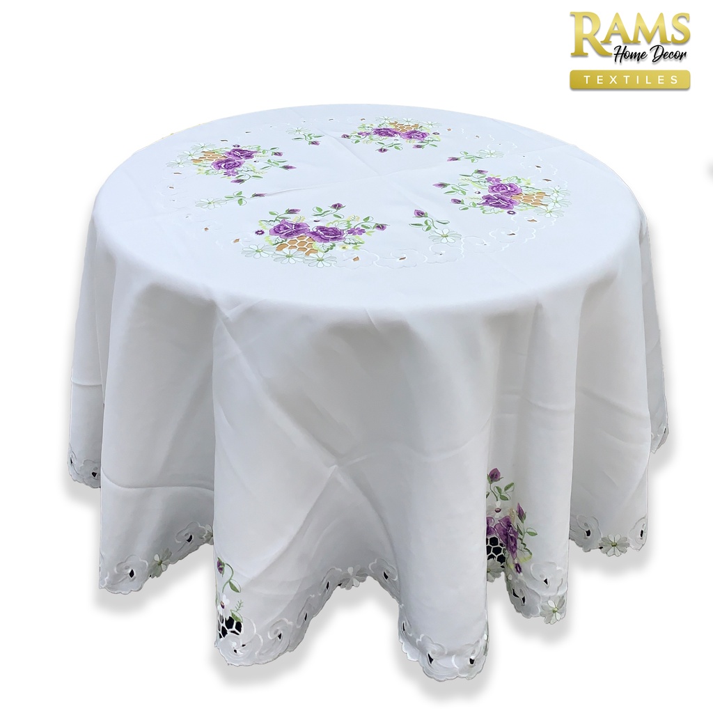 Embroidered Lace Table Cloth Round / Table Cloth Oval / Alas Meja Makan / Pelapik Meja / Hiasan Meja - Purple Flower