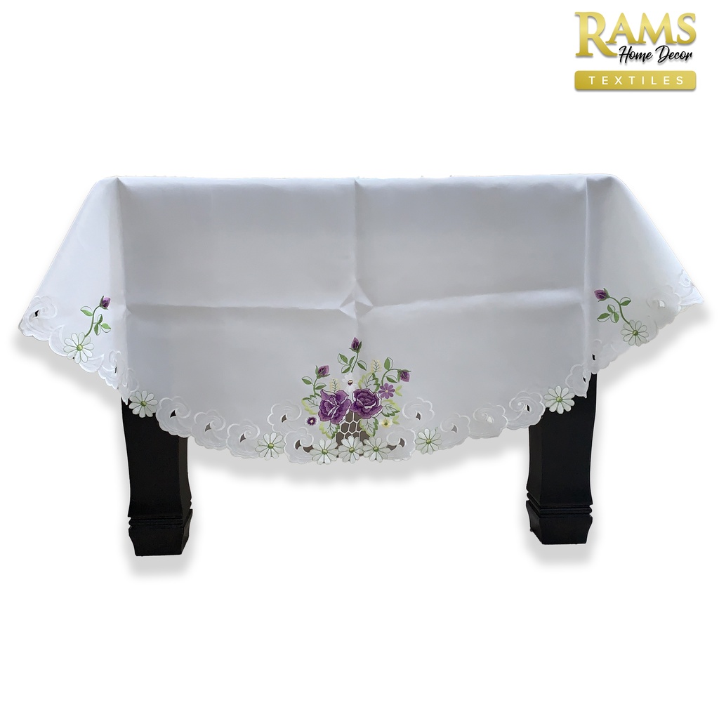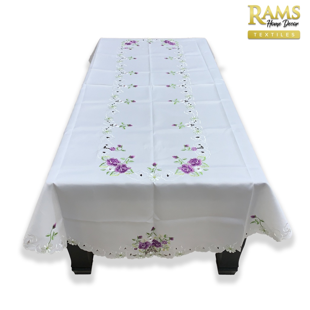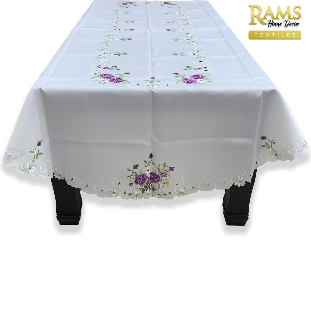 Embroidered Lace Table Cloth Round / Table Cloth Oval / Alas Meja Makan / Pelapik Meja / Hiasan Meja - Purple Flower