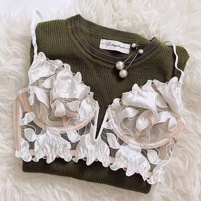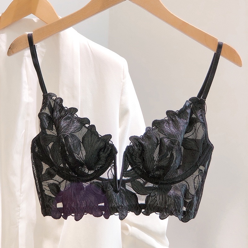 Sexy and unique unpadded lace bra with embroidered floral patterns - THAOCHERRY BR03