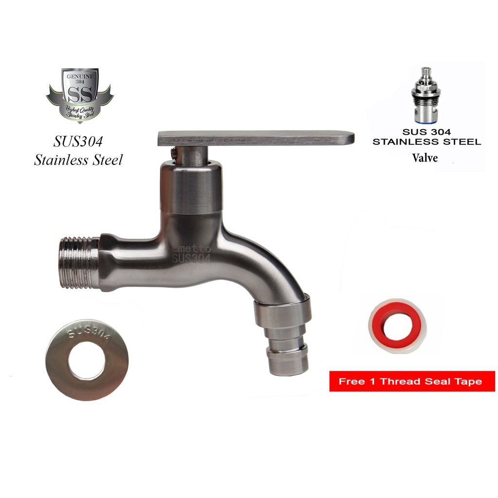 Emetto Stainless Steel Wall Mount Faucet and Water Tap for Washine Machine and Garden Usage with Free Sealing Tape
