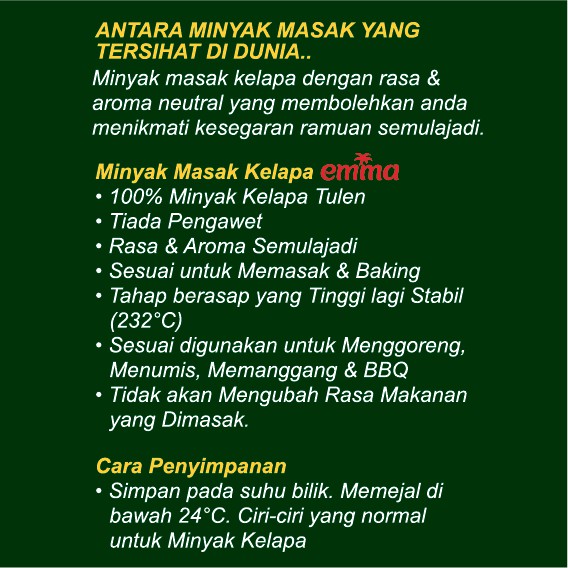 Emma Minyak Masak Kelapa 1L x 2, Emma Coconut Cooking Oil, Coconut Oil, Minyak Masak