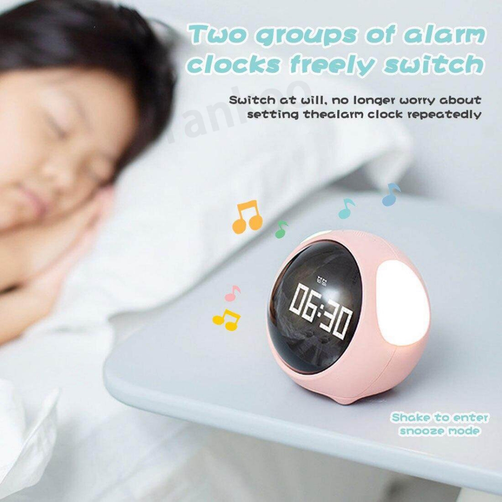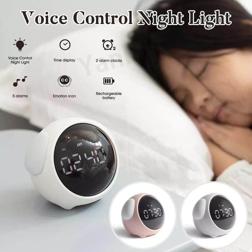 Emoticon Alarm Clock Multi Function Digital LED Voice Controlled Light Bedside Clock for Home Office Best Gift for Kids