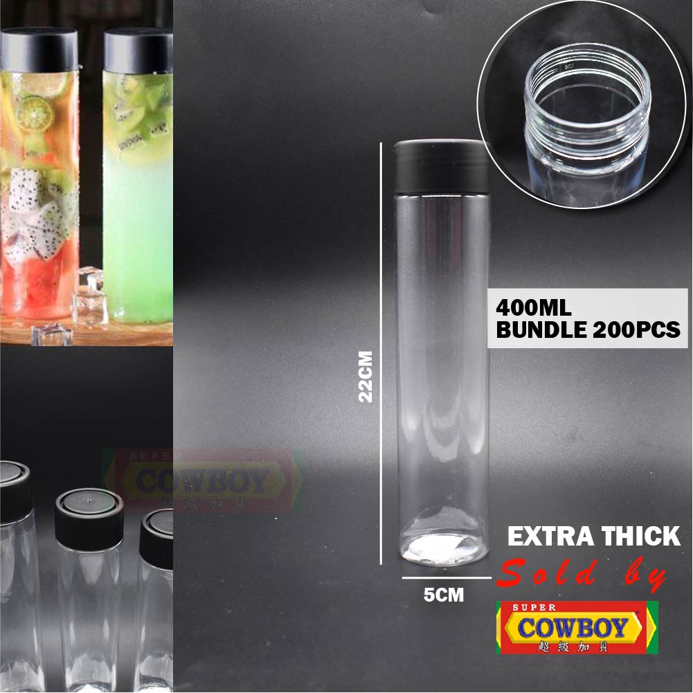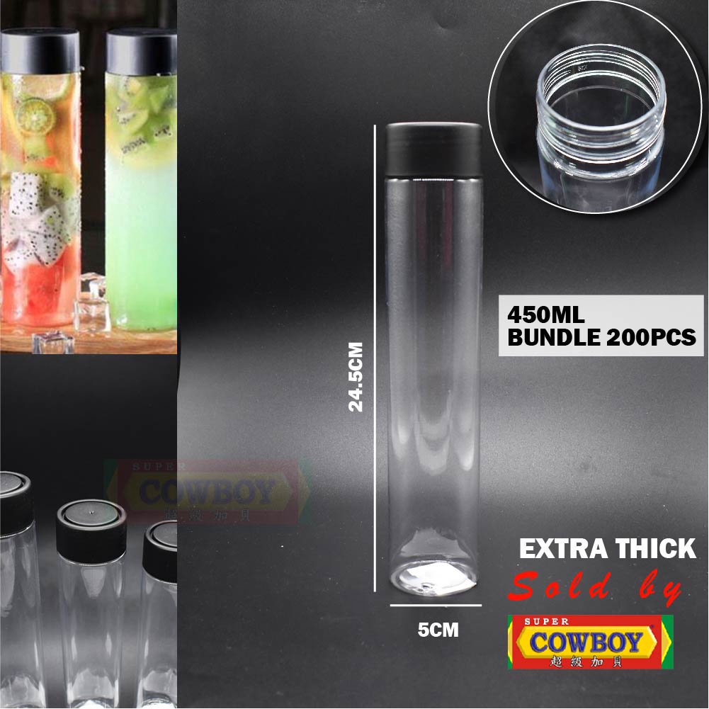 Empty Juice Bottle Bubble Tea Bottle Botol Kosong Penutup Hitam Botol Air Plastik Transparent BottleCylinder Boba Balang