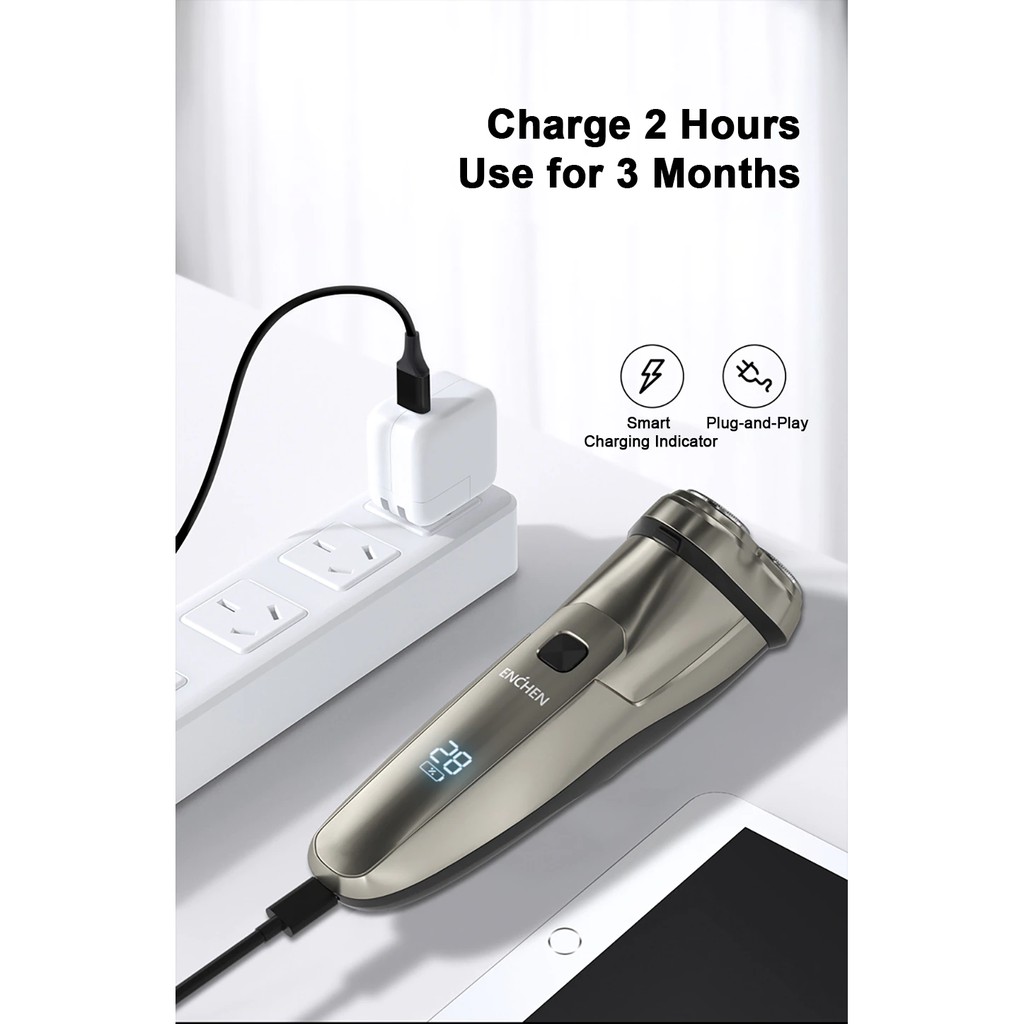Enchen Shaver Steel 3/3S Electric Shaving Machine Beard Razors Temple Hair Trimmer Rechargeable For Men's Face
