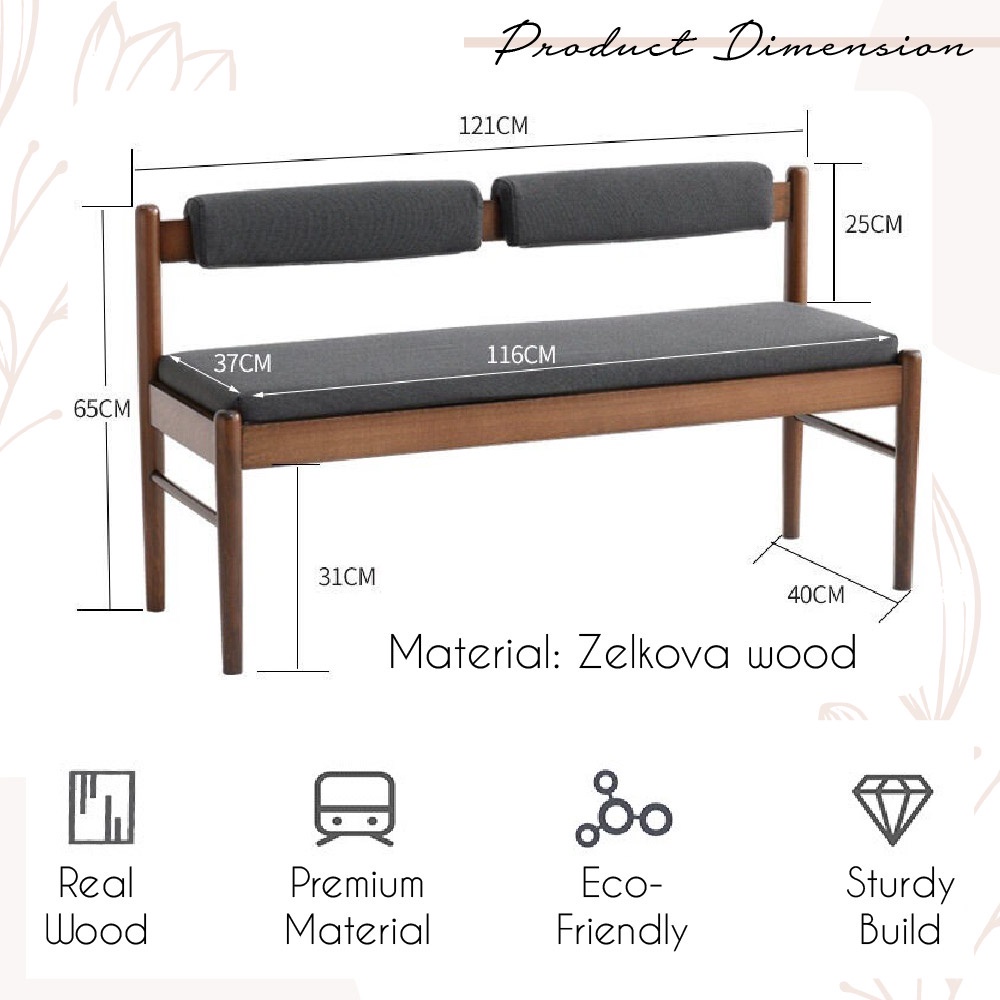 Encora Armless Long Wood Bench With Soft Comfortable Cushion Kerusi Panjang Kayu