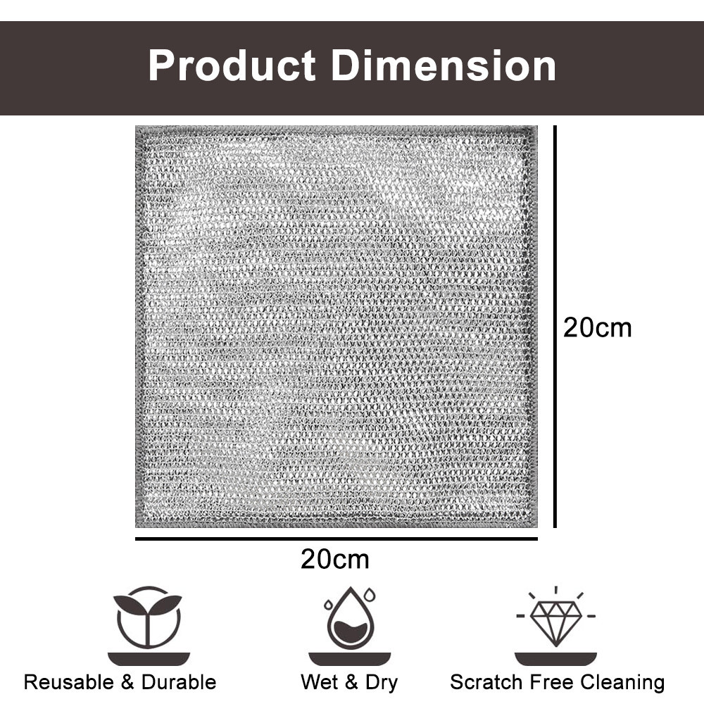 Encora Multifunction Washing Rag Silver Mesh Cloth Kain Lap Serbaguna Dish Towel Kain Besi Stainless Steel Wire Cloth