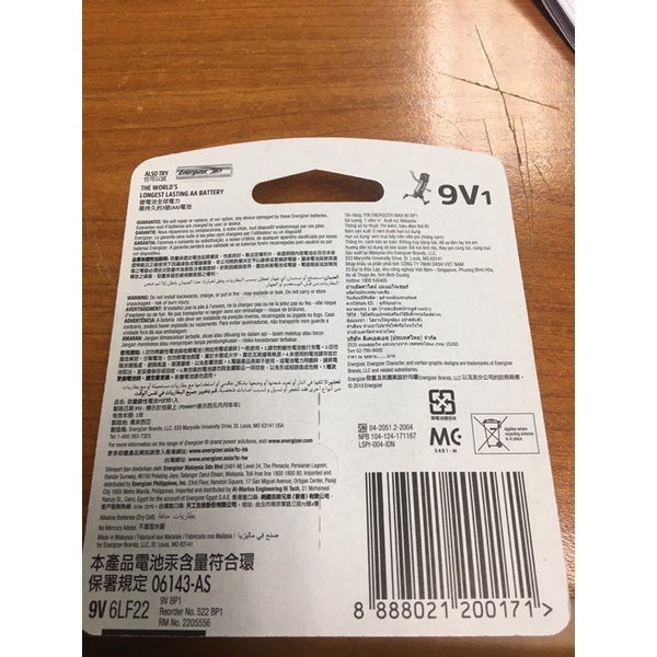 Energizer Max 9V 1pc - 522bp1 (100% Original Battery)