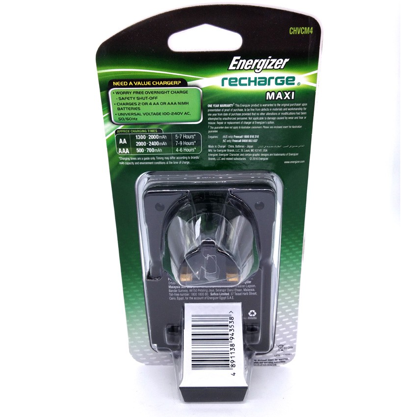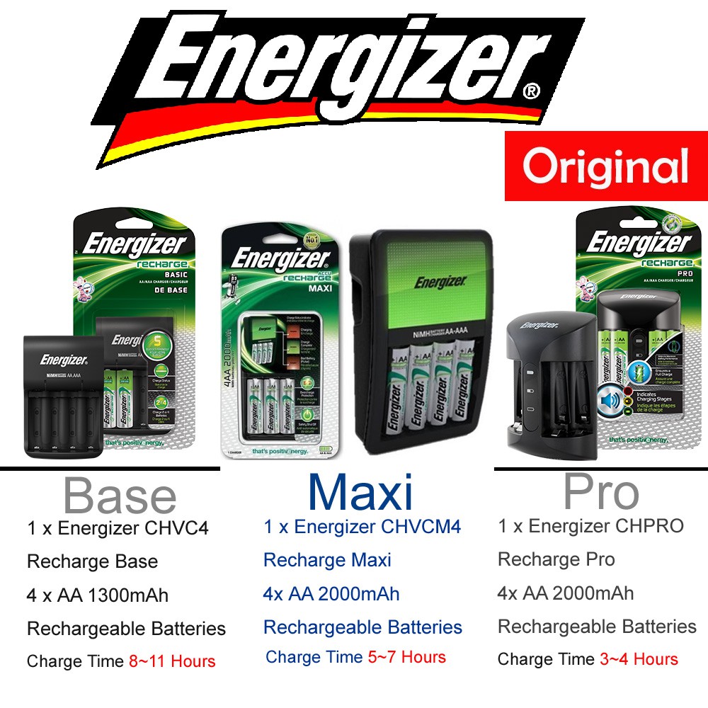 Energizer Recharge Base Maxi Pro Includes 4x AA Rechargeable Batteries Bateri Boleh Dicas Cas Semula Beteri