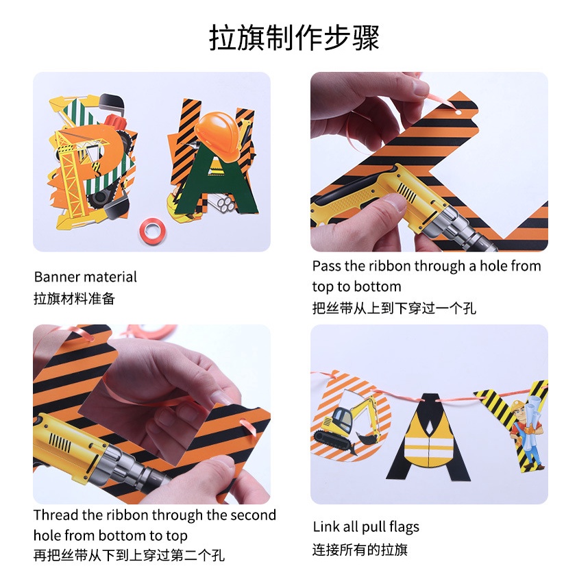 Engineer Bulldozer Happy Birthday Banner Excavator Boys Party Decorations Concrete Mixer Truck Birthday Decor Yellow Bla
