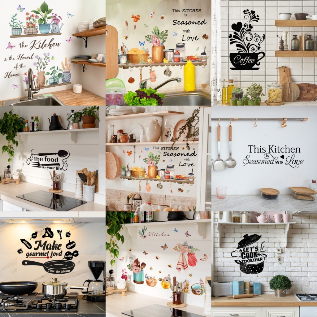 English Kitchen Plant Pot Wall Stickers Kitchen Home Decoration Wallpaper Self-adhesive Decals