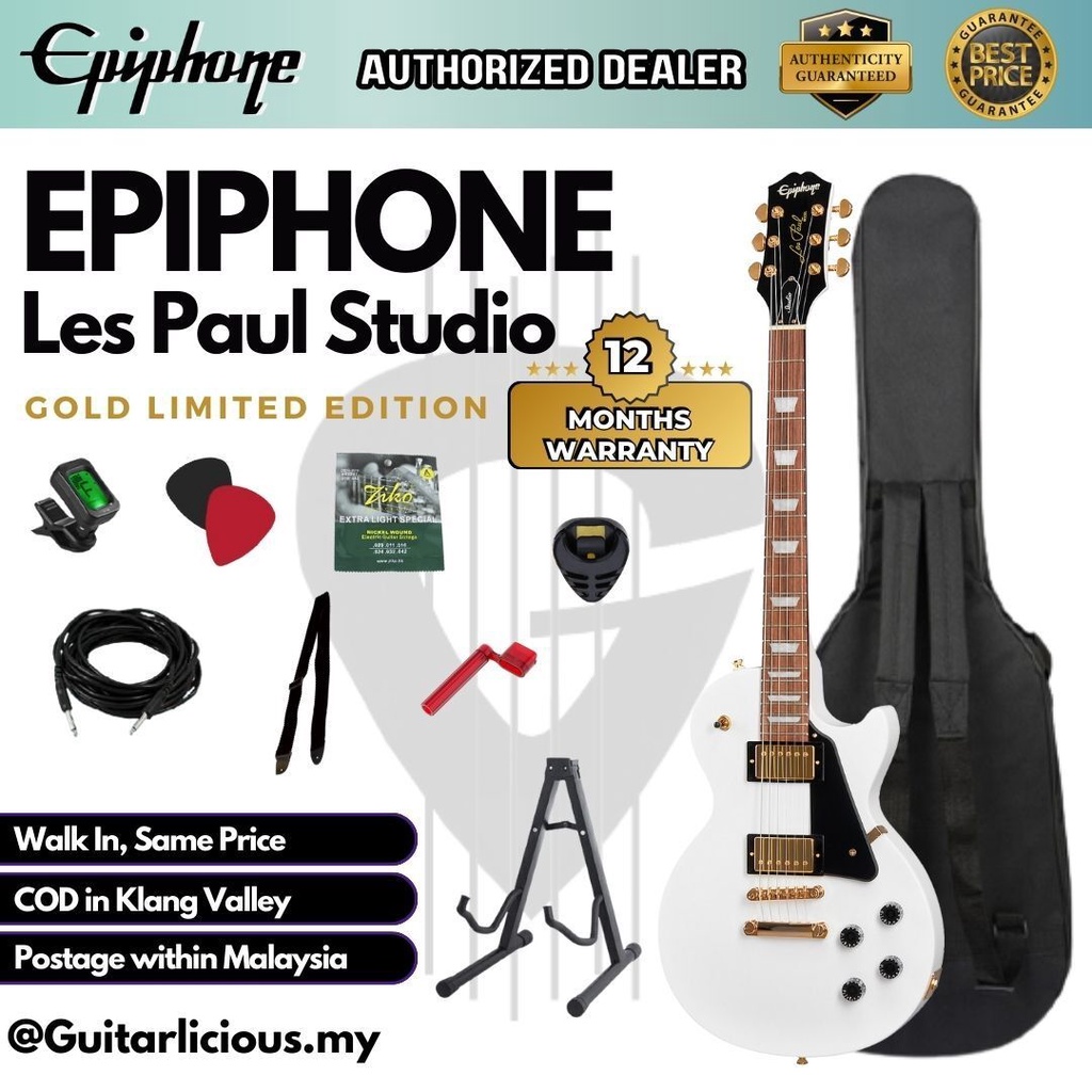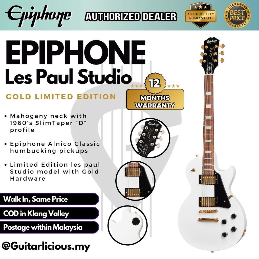Epiphone Les Paul Studio Gold Limited-Edition Electric Guitar humbucker HH Pick up & Gold Hardware - Alpine White (AW)