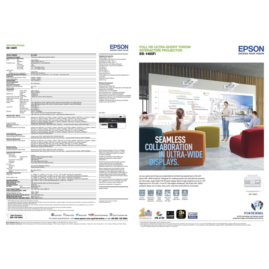 Epson EB-1485Fi 5000 Lumens, WXGA, Laser, Interactive 3LCD Projector
