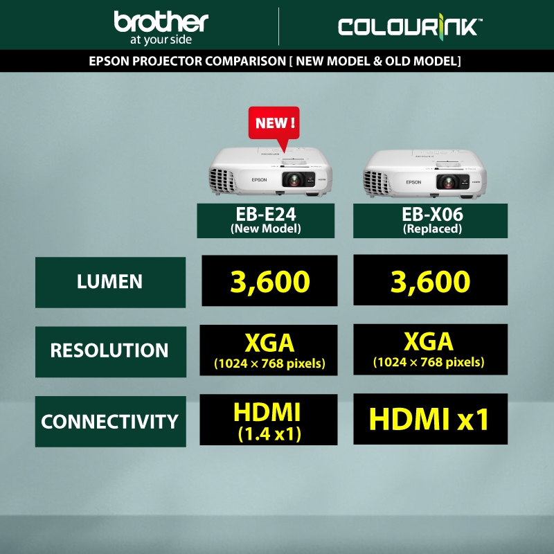 Epson EB-E24 XGA 3LCD Projector 3,600 Lumen VGA High Brightness Build-In Speaker Wireless Display EB-E10 EB-E12 EB-X06