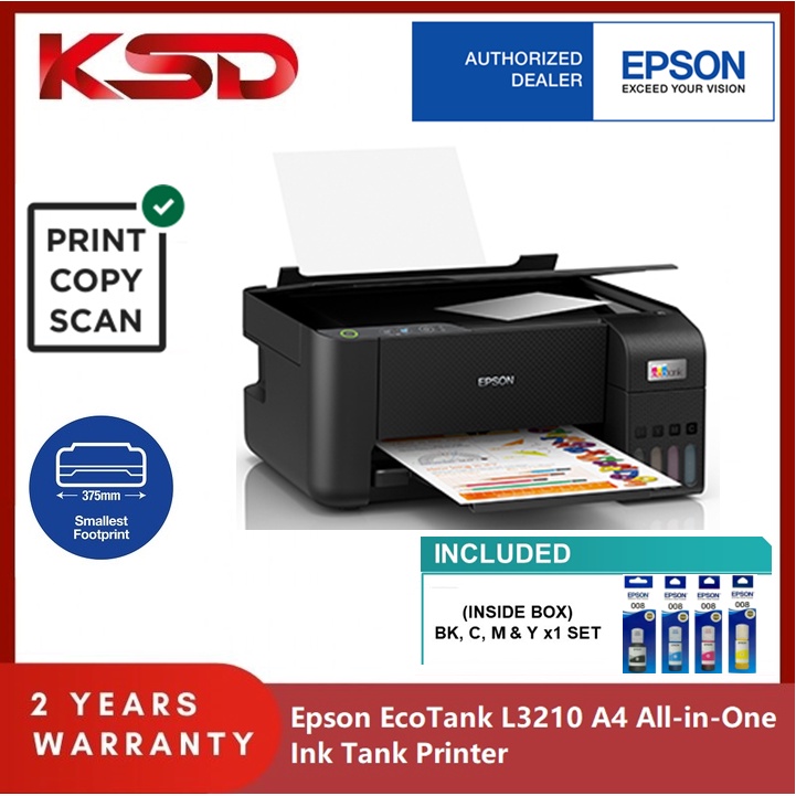 Epson EcoTank L3210 All-in-One Ink Tank Printer (with Original Epson 003 Refill Ink 1 Set, Not Compatible Ink)