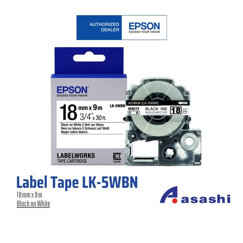 Epson LK-4WBN / LK-4WRN / LK-4WLN / LK-4KBM / LK-4TBN / LK-4YBP / LK-5WBN / LK-5YBP Label Tape / 12mm x 9m / 18mm
