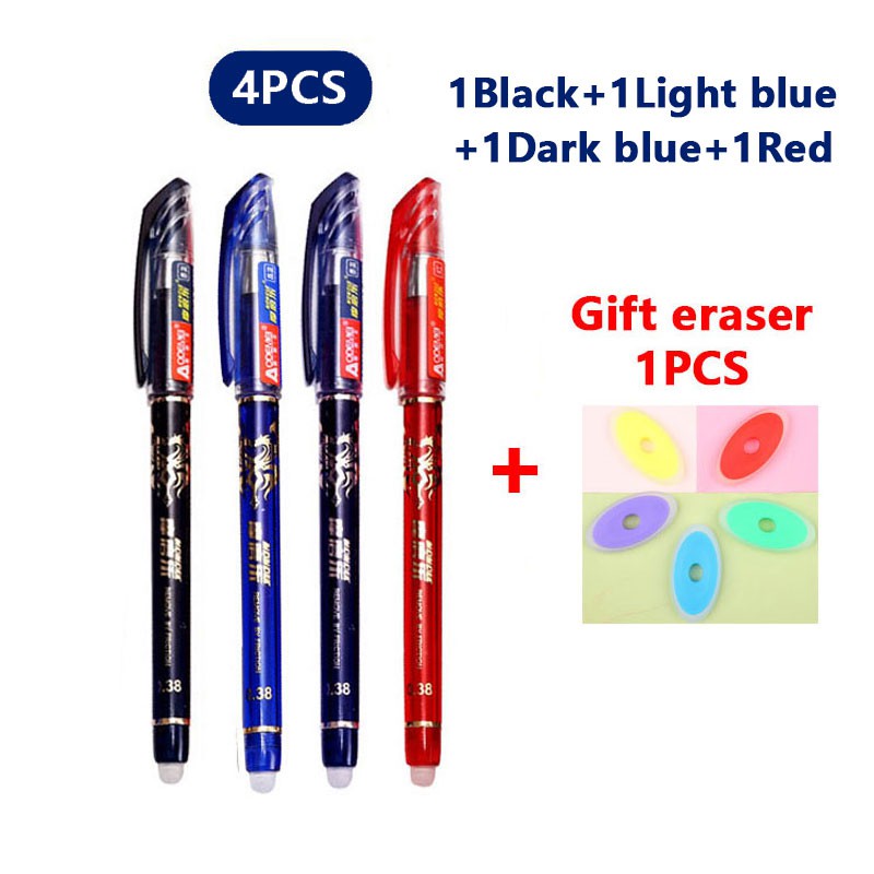 Erasable ballpen Gel pen set 0.5mm ball tip Black,Light Blue,Red,Dark Blue ink Refills friction pen with eraser School & office writing supplies Stationery