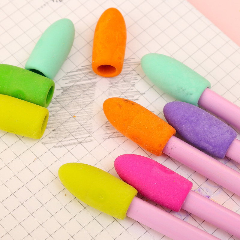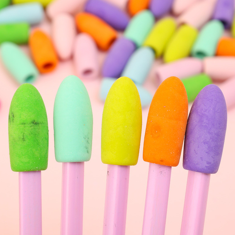 Eraser Pencil Caps - Colorful Cylinder-Shaped Rubber Pencil Tips - School Office Supplies - 2 In 1 Pupil Pencil Tip Cap Eraser - Removable Pencil Eraser