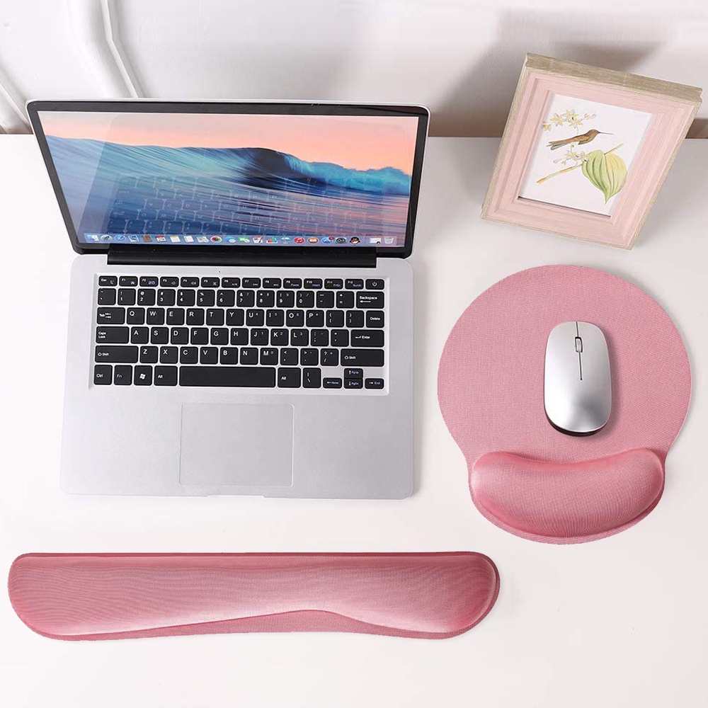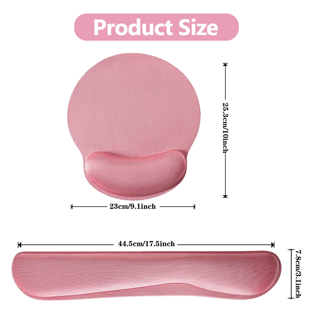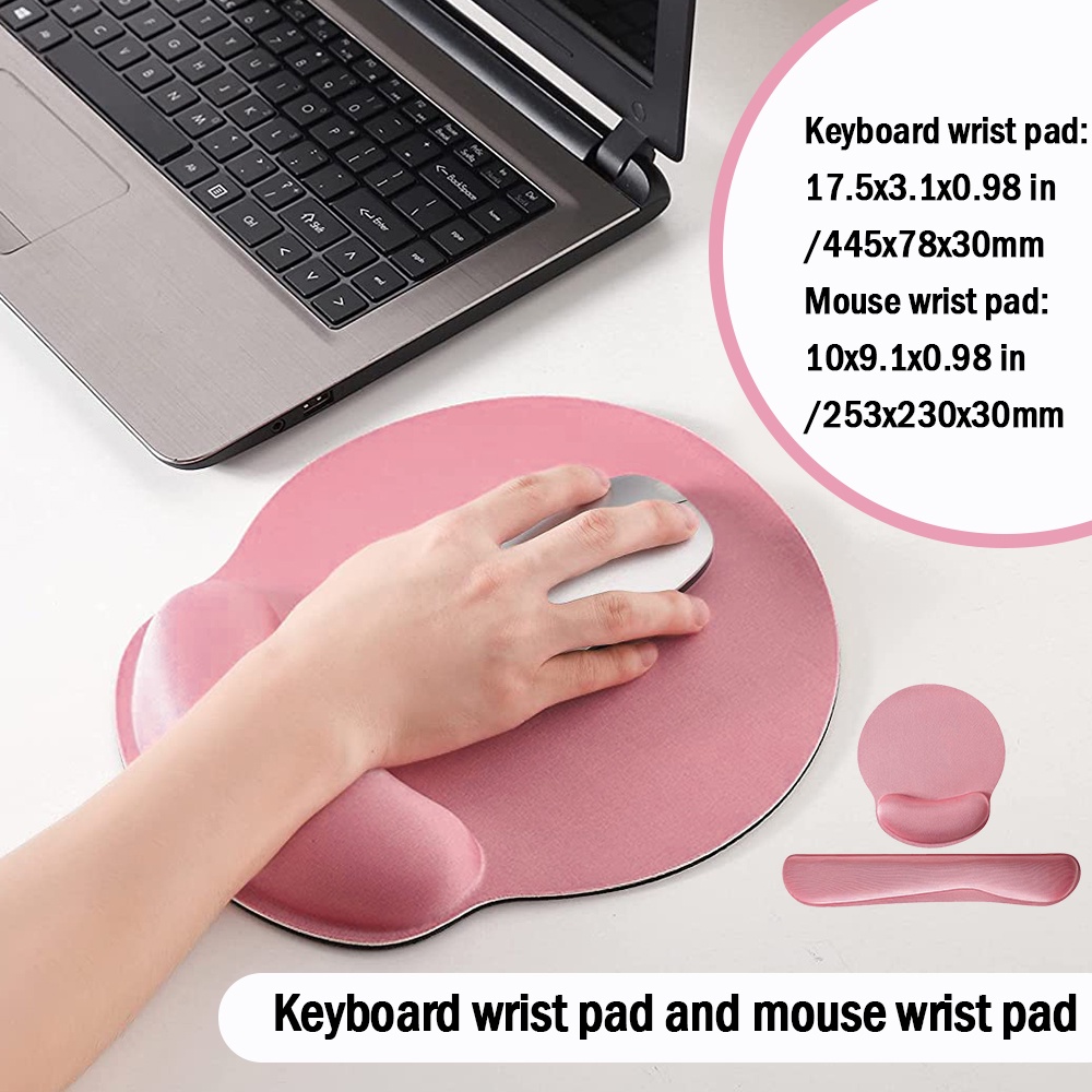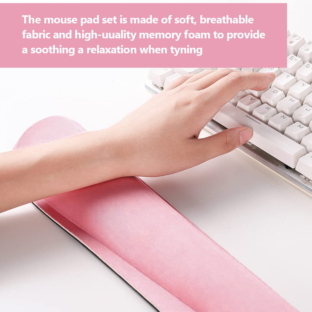 Ergonomic Memory Foam Keyboard and Wrist Rest Pink Mouse Pad with Non-Slip Rubber Base