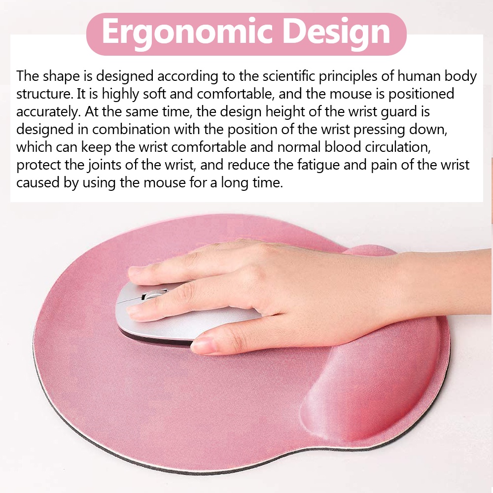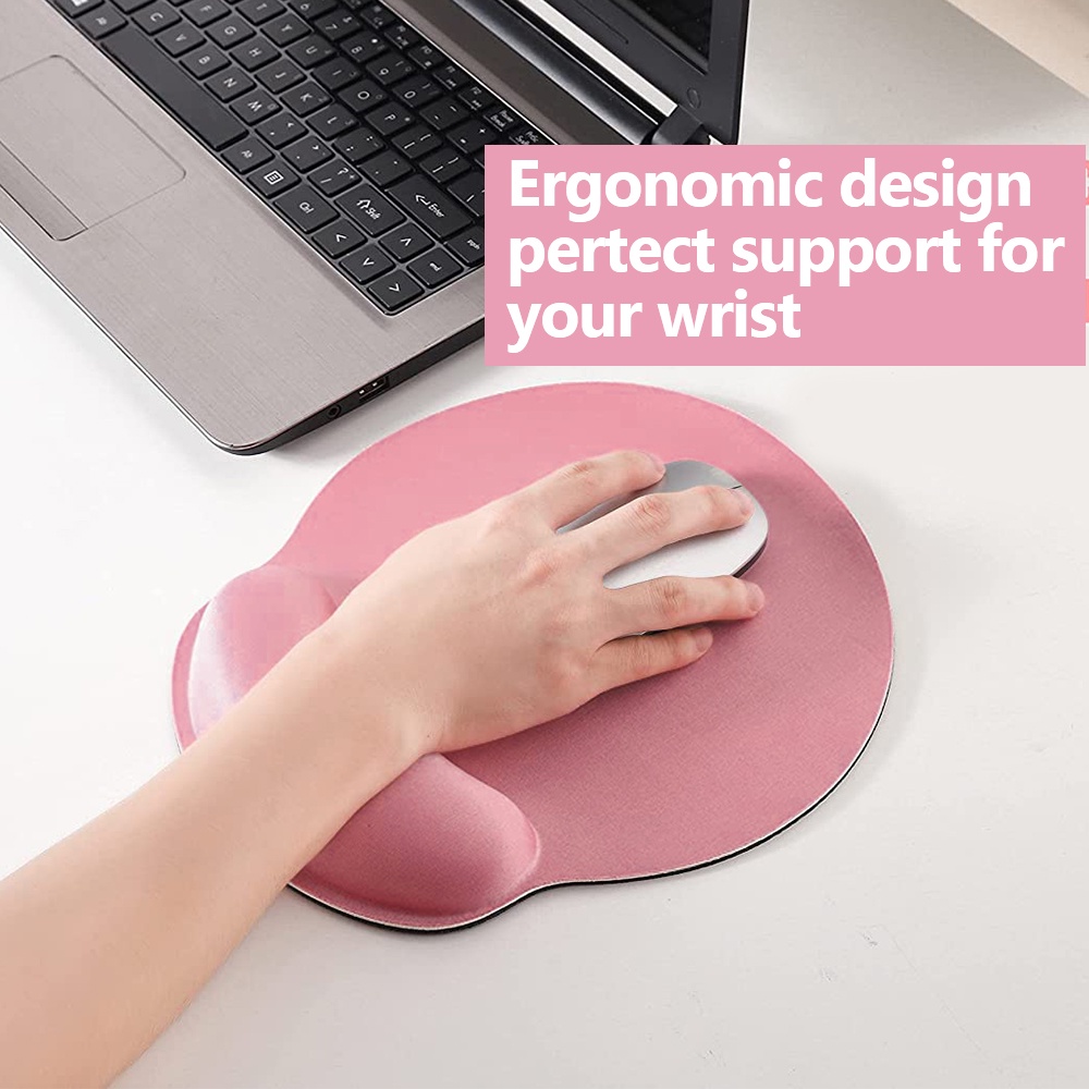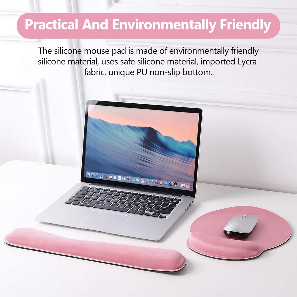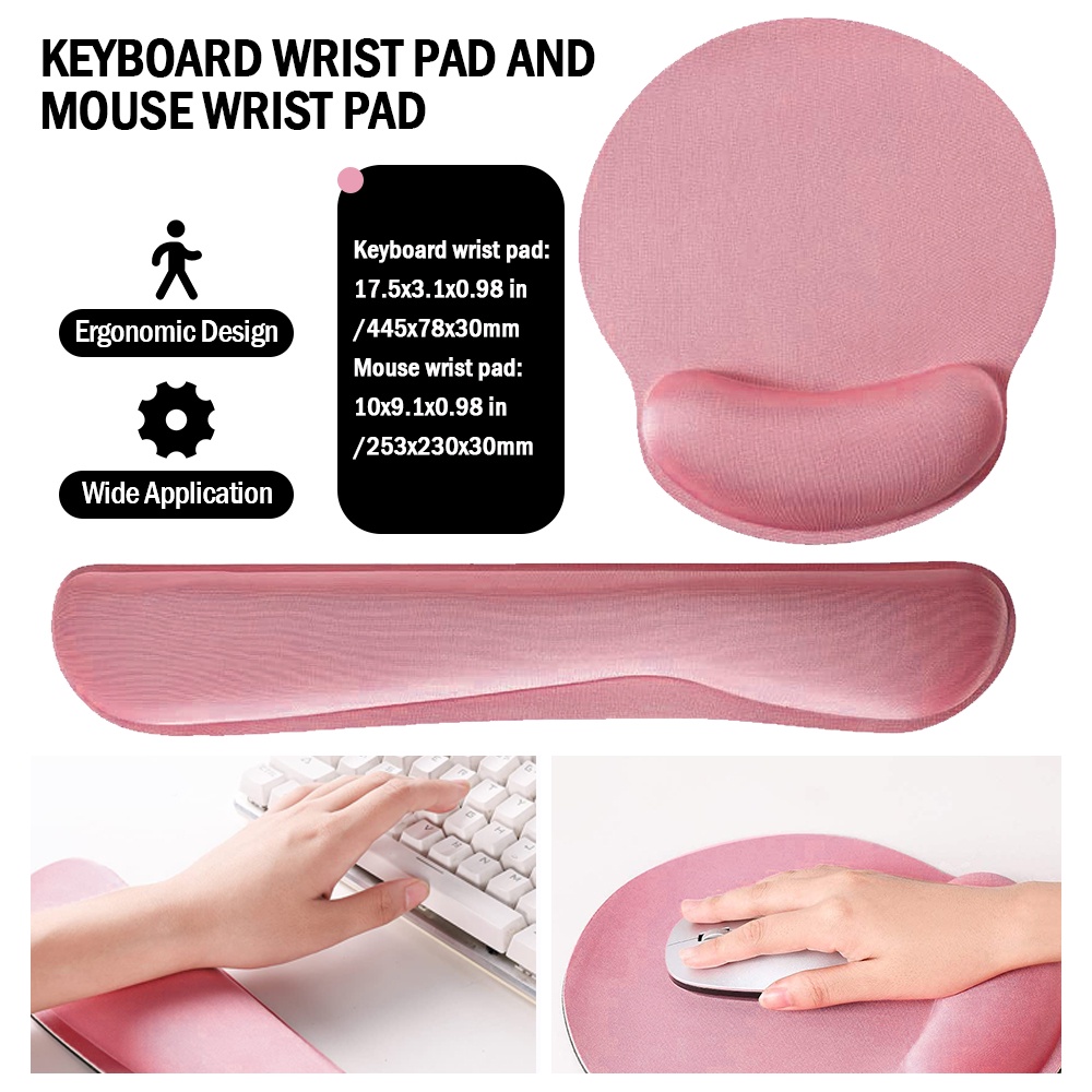 Ergonomic Memory Foam Keyboard and Wrist Rest Pink Mouse Pad with Non-Slip Rubber Base