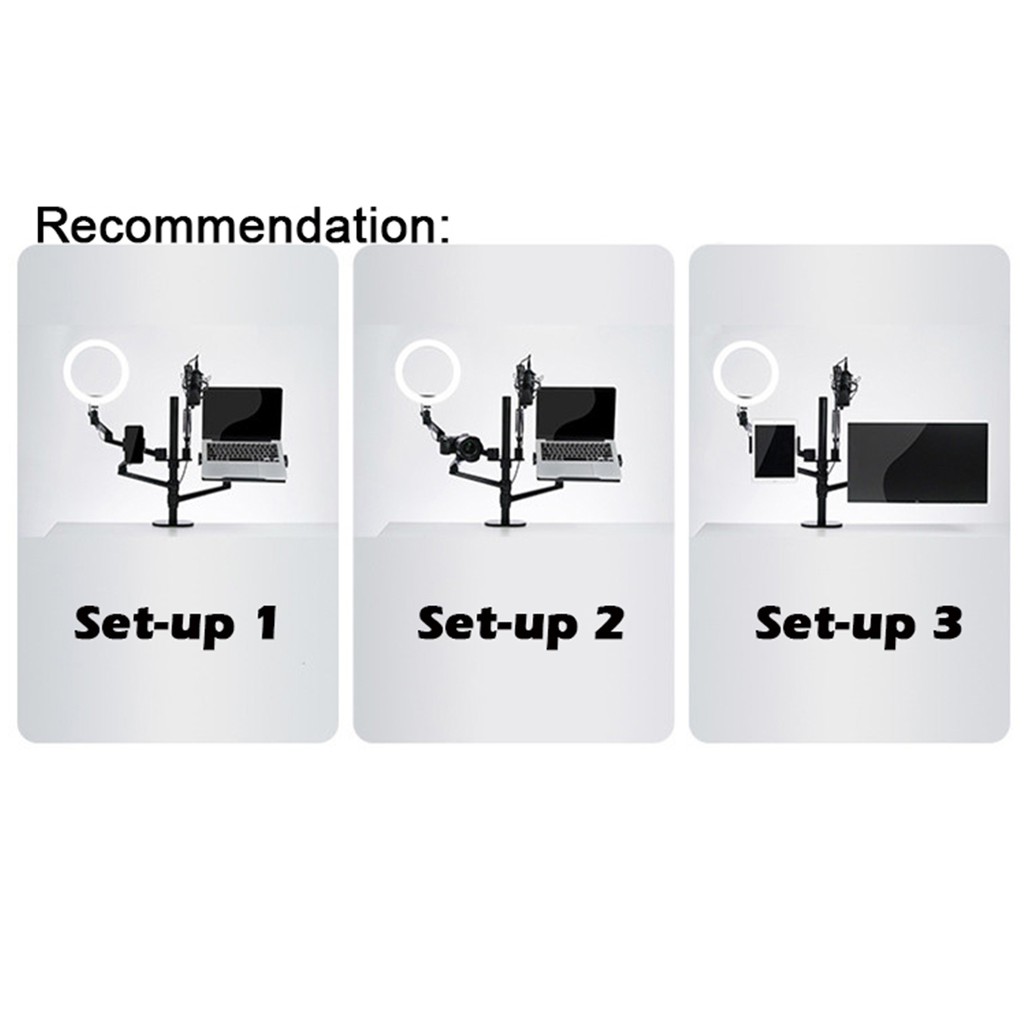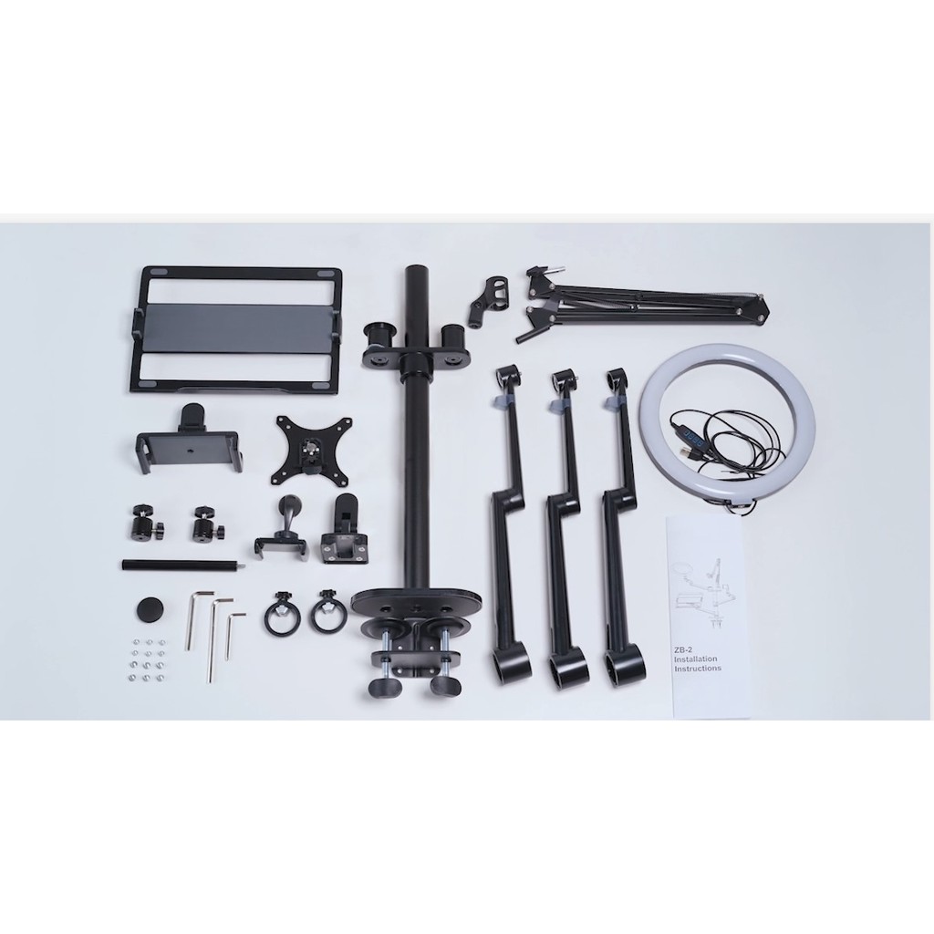 Ergonomics Height Adjustable Aluminum Alloy phone Laptop Holder Stand And Lcd Monitor Arm and LED Ring Light Microphone