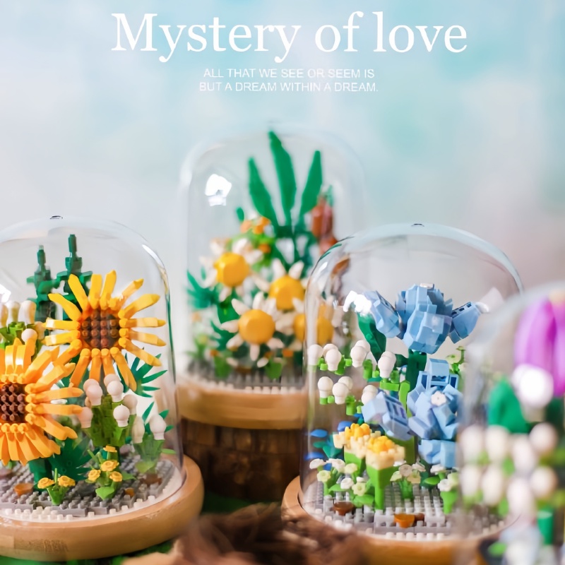 Eternal Flower Building Block Compatible With LEGO Flower Decoration Brick Bricks Bouquet With Transparent Display Cover