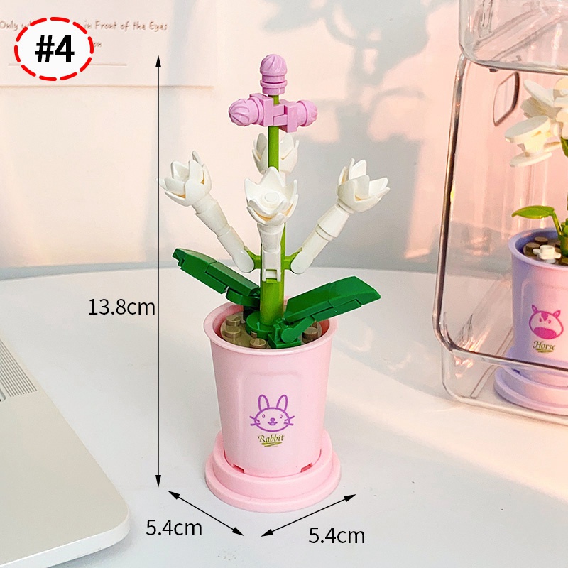 Eternal Flower Building Block Toy with Vase Table Plants Flowers Potted Handmade Assembly Block Toys Block