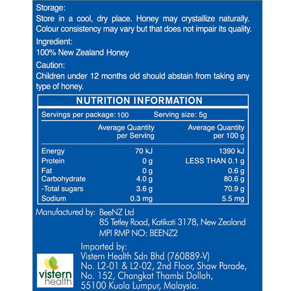 Eu Yan Sang HM Manuka Honey 余仁生麦卢卡蜂蜜 MGO100+ (500g)
