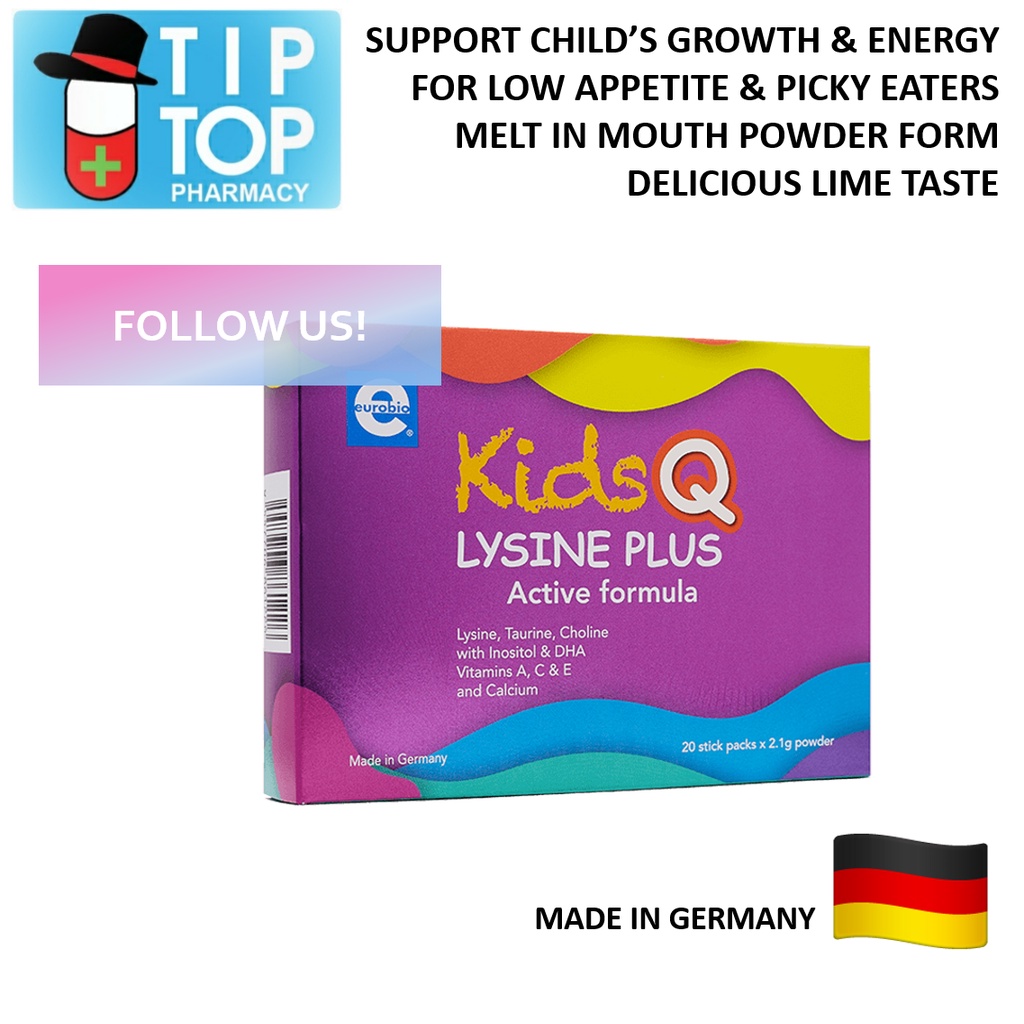 Eurobio Kids Q Lysine Plus Active Formula 2.1g stick packs ( child appetite growth & energy tenaga & selera makan anak )