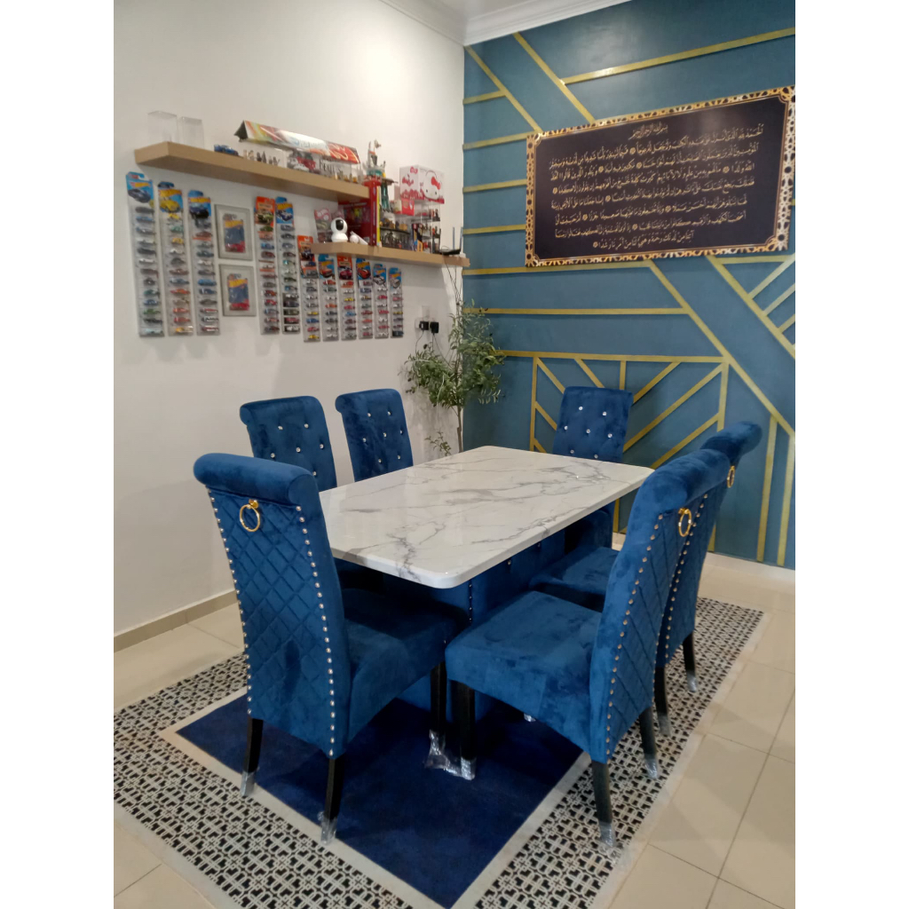 Europe Classic Classic Chesterfield Dining Marble Set Dining Table Dining Chair Set Dinner Set Makan Marble