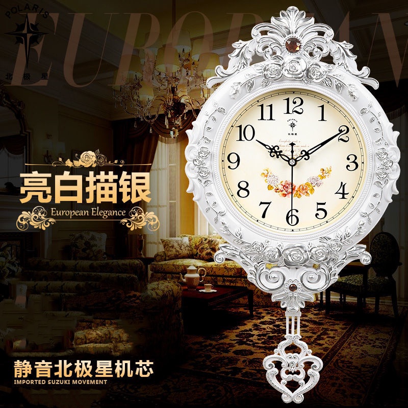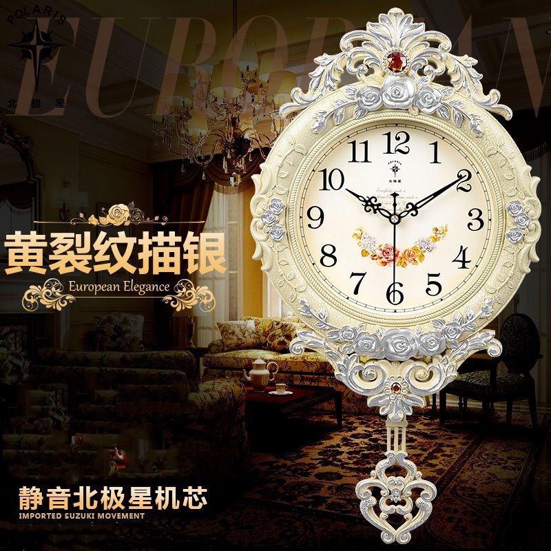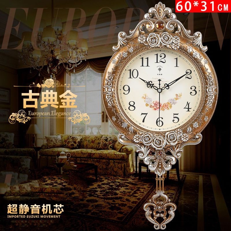 European Style Clock Creative Silent Swing Wall-Mounted Wall Watch Living Room Clock Quartz Clock Household